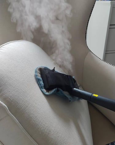 تنظيف وتعقيم الخزانات والكنب والسجاد بالبخار للحفاظ على الأجواء الصحية.